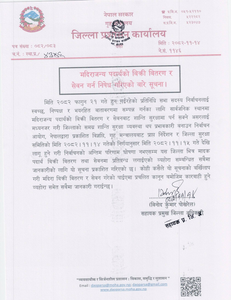 जिल्ला प्रशासन कार्यालय, पर्साको अत्यन्त जरुरी सूचना !