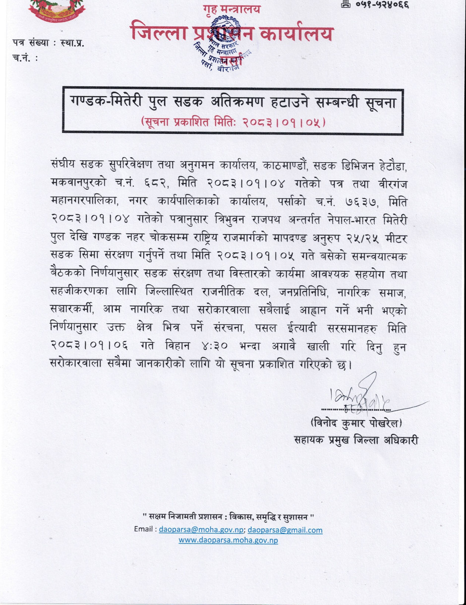 जिल्ला प्रशासन कार्यालय, पर्साको अत्यन्त जरुरी सूचना !